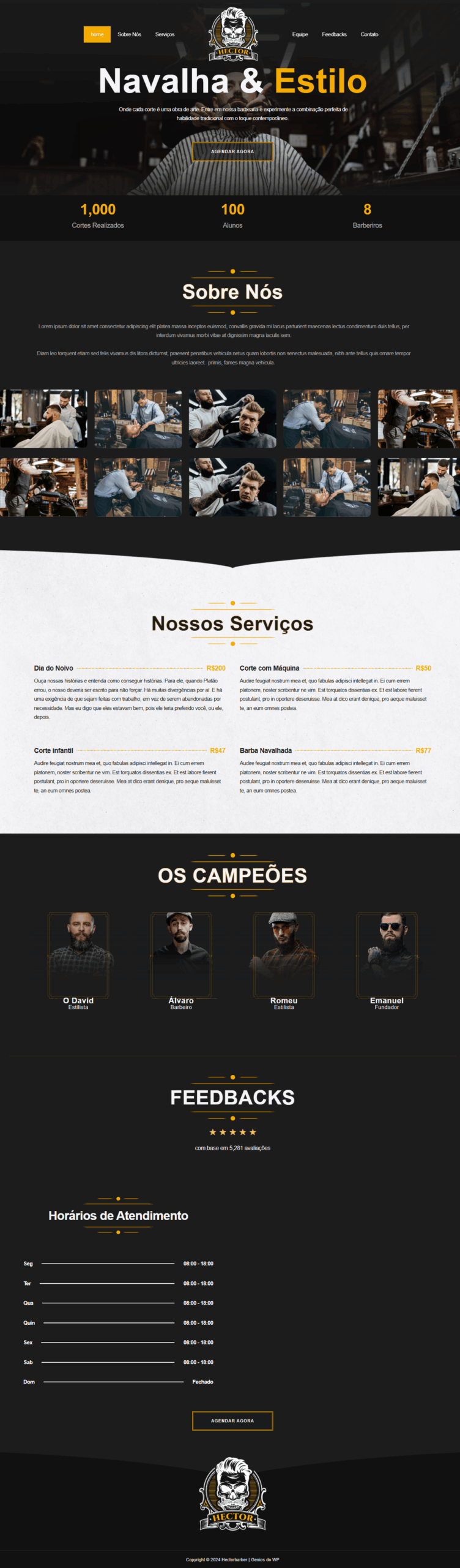 - ✂️ Páginas exclusivas para serviços, equipe e portfólio